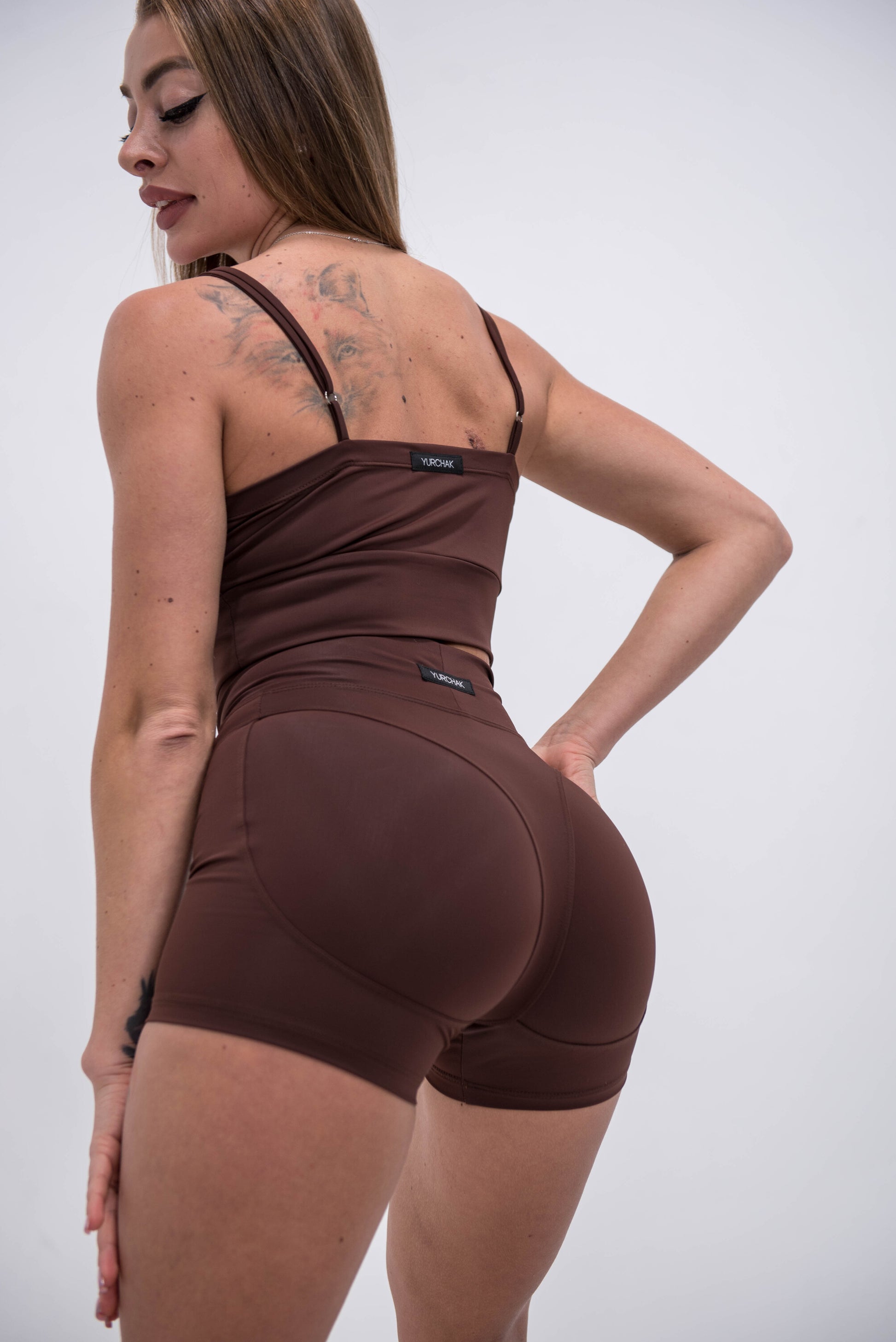 Bold and sculpting shorts designed to elevate your curves and performance. Featuring a fully covered design they enhance your silhouette while keeping the signature cheeky YURCHAK vibe. The high-waisted fit with a soft elastic waistband provides security and comfort, while the doubled panties part gives extra support for any movement.