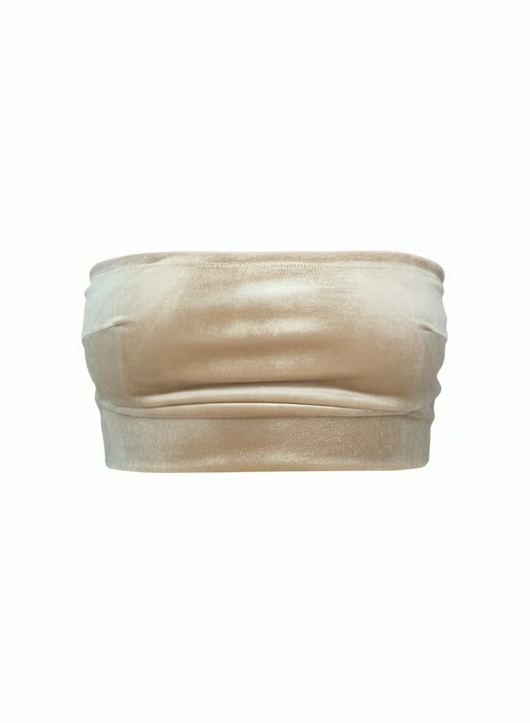 Chic and daring strapless top crafted from soft beige velour. Designed to stay in place during active movement while giving a sleek, body-hugging fit. The bandeau cut highlights the shoulders and neckline, while the smooth velour texture adds a luxe touch to your look. Perfect for pole dance, fitness, or styling into a bold everyday outfit.