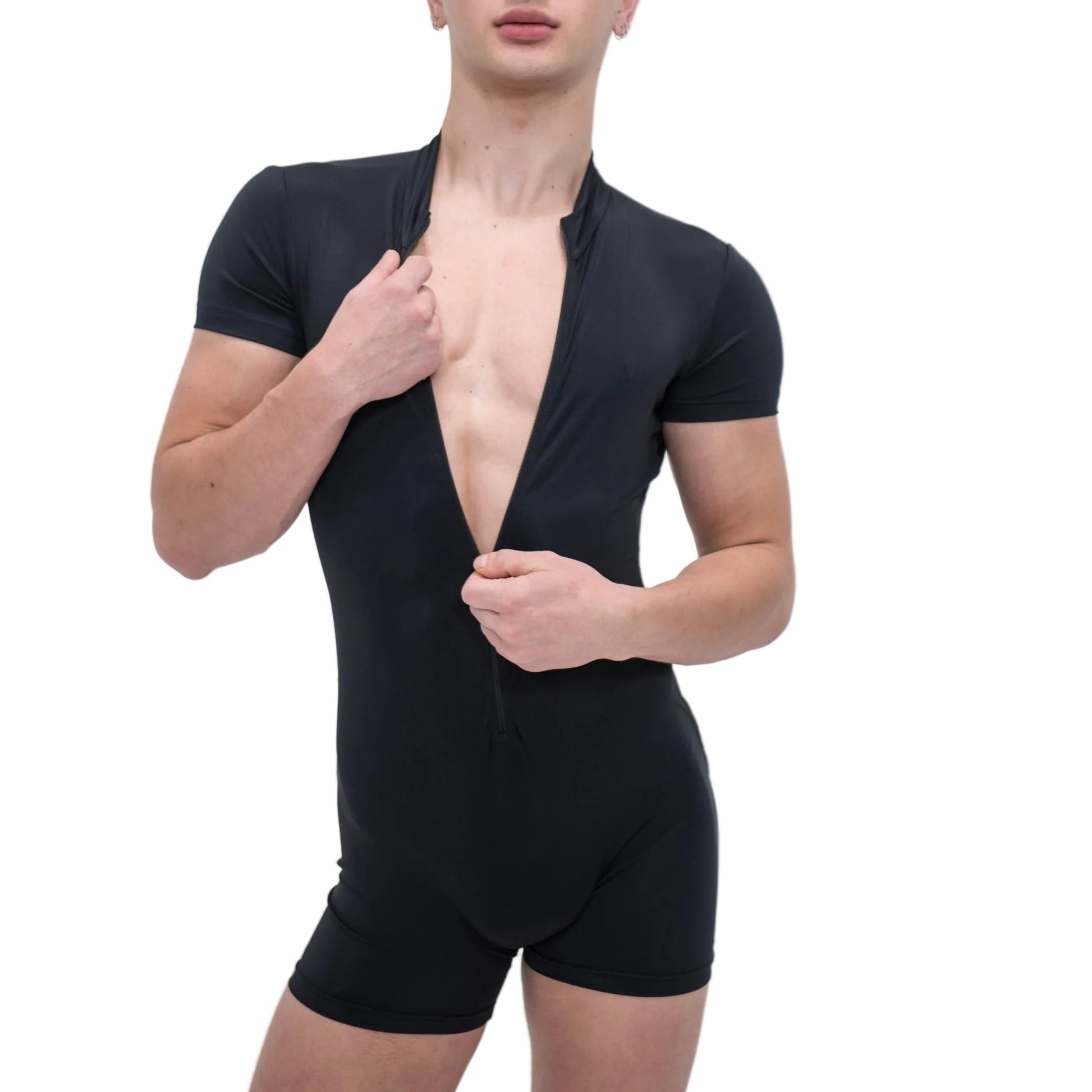 • Front zipper closure — adjustable neckline for versatile styling